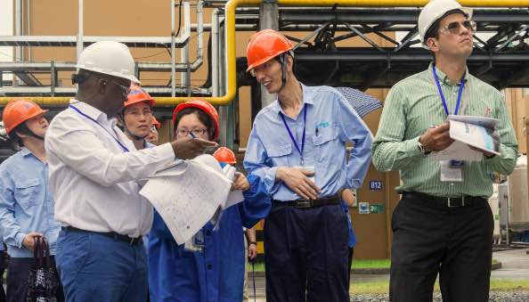 7月5日上午,OPCW視察組和國家代表、省市陪同人員在聽取核查前情況介紹后,共同前往公司生產區域進行了現場核查。視察組一行在察看企業總平面布置之后,分別對生產裝置、工藝流程等作了詳細了解,核實了企業生產經營中的相關記錄、原始臺賬、報表等,公司陪同人員客觀、專業的回答了核查組提出的各類問題。